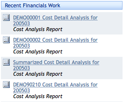 The Financials Summary acts as the homepage for the Financials module, and contains shortcuts to key components of the module.